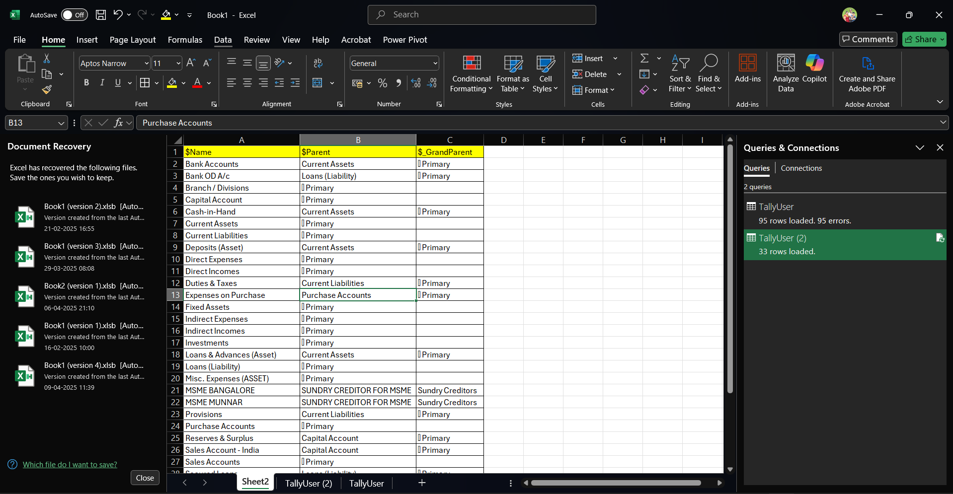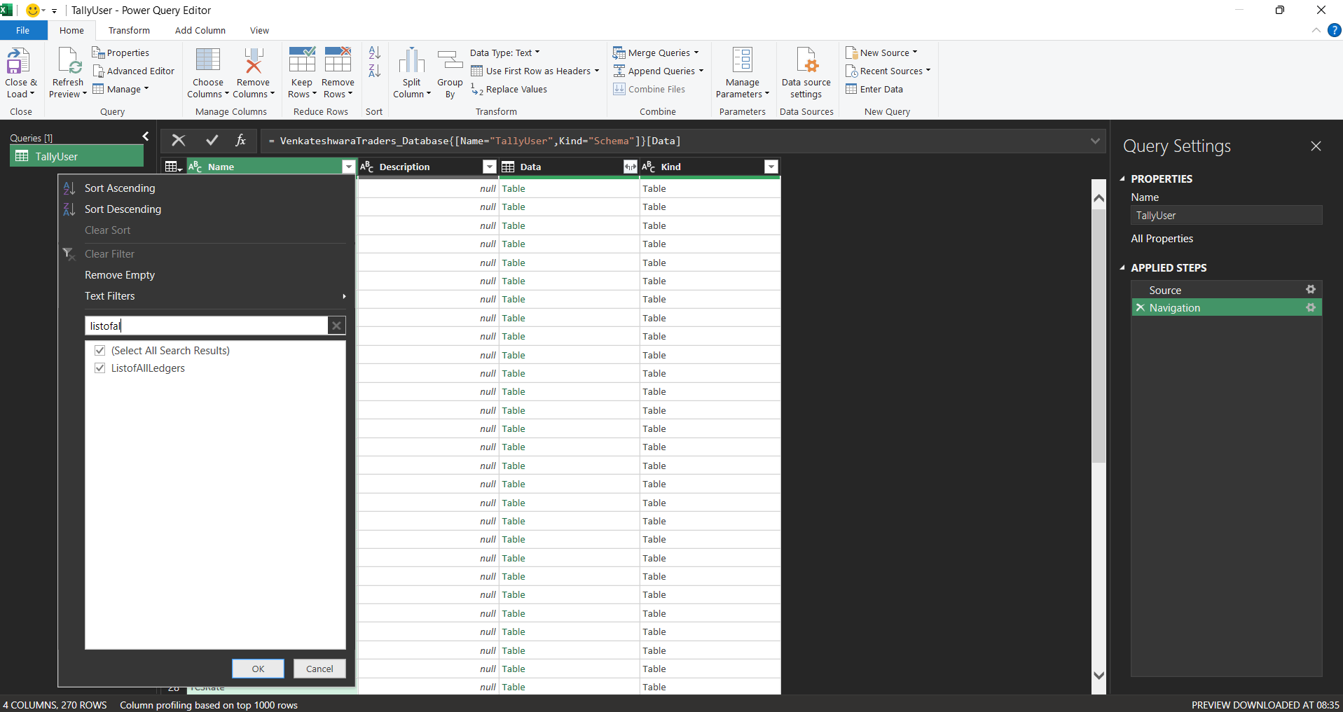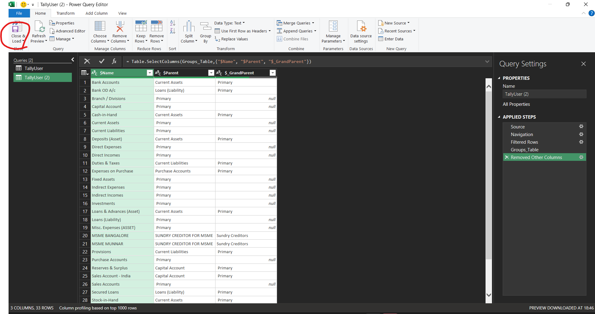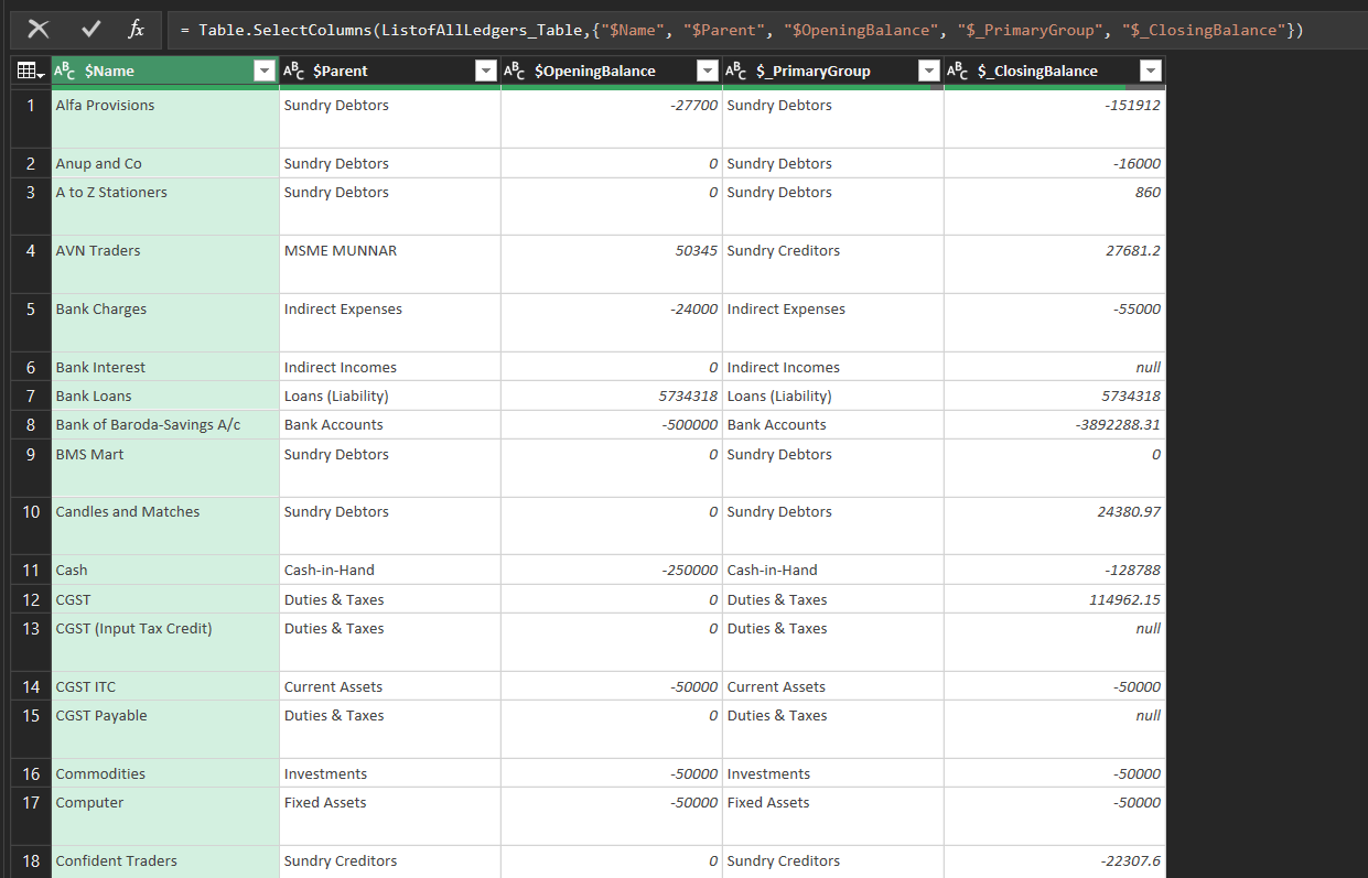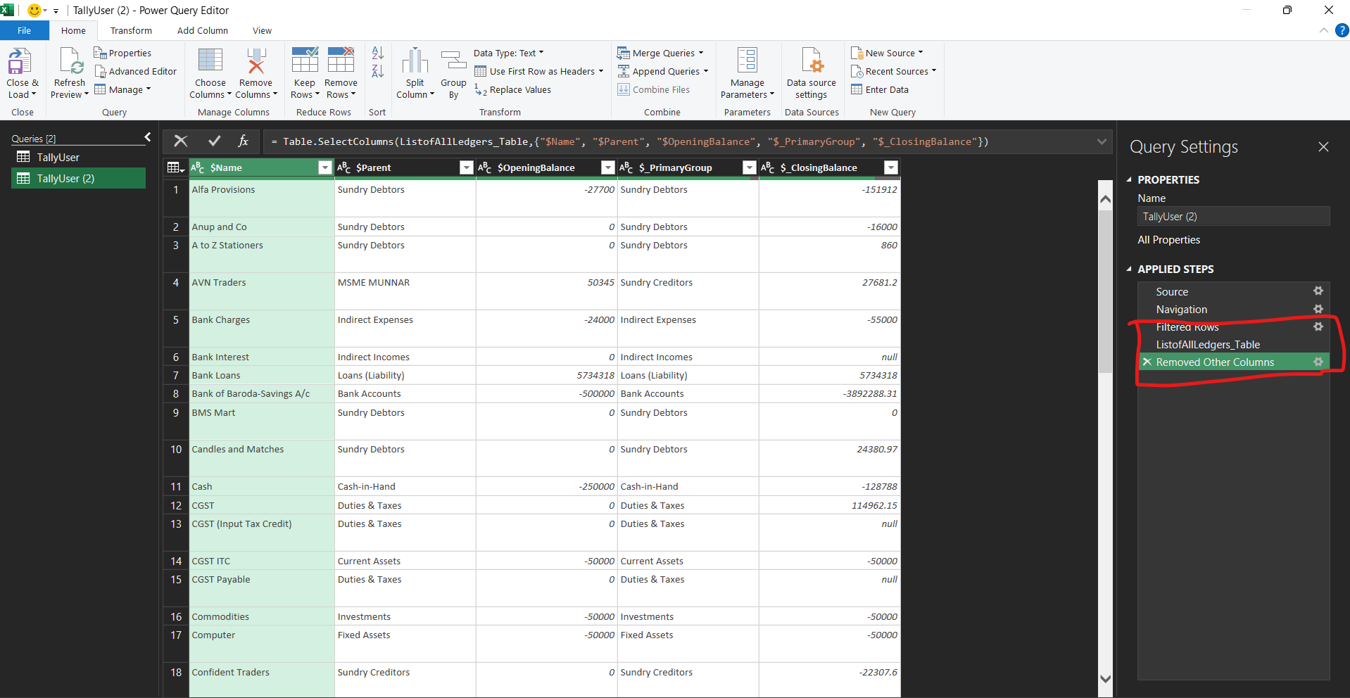 Step 13: Click Choose Columns and select the columns “Name”,”Parent”,”PrimaryGroup”,”opening balance”,”closing Balance”